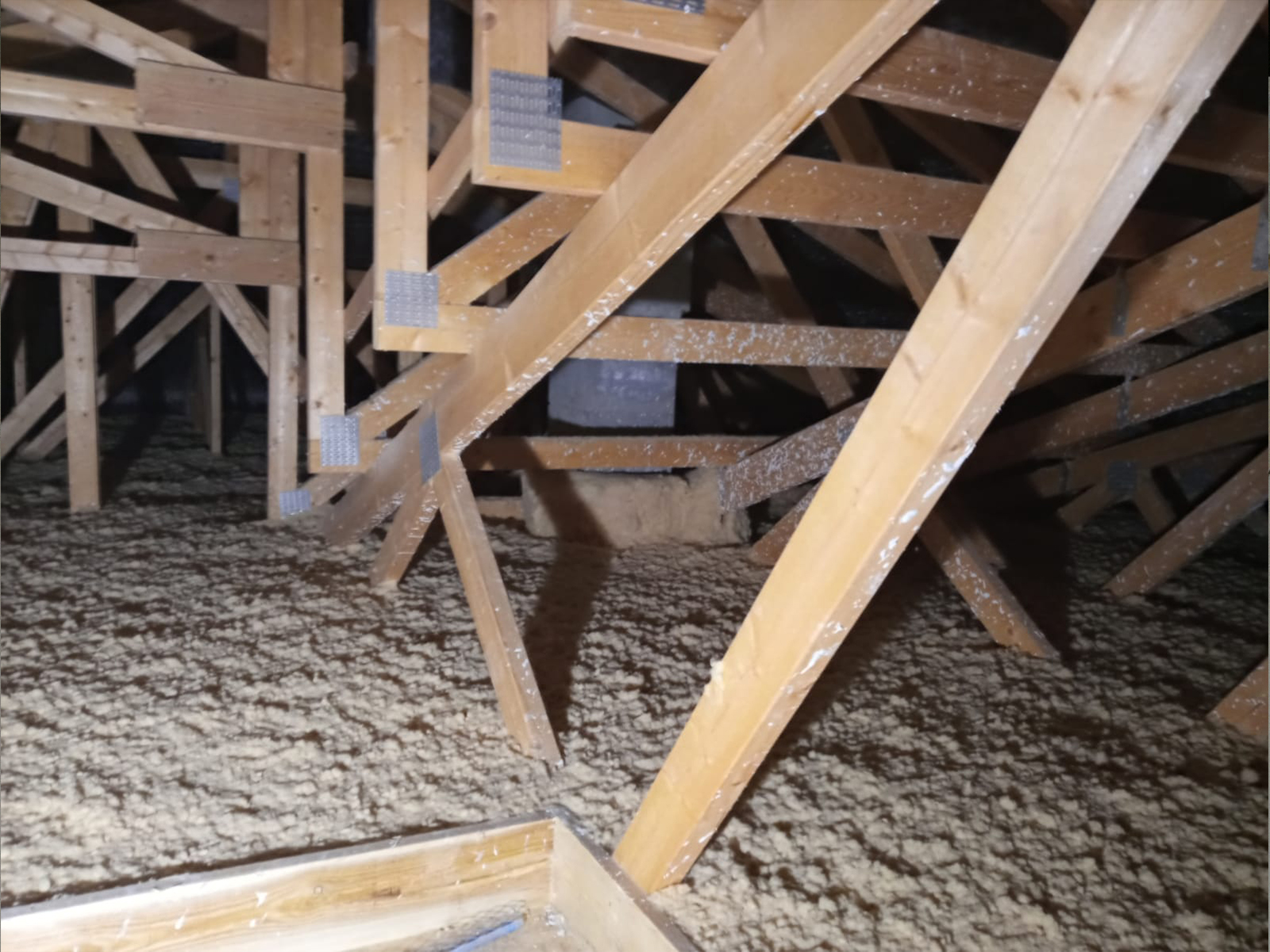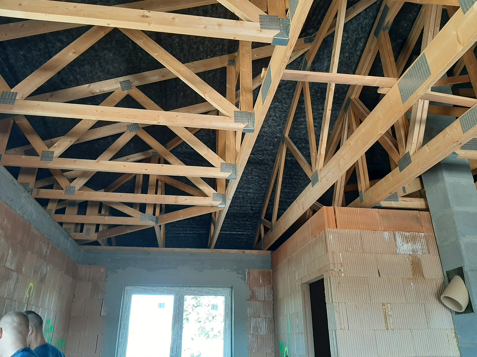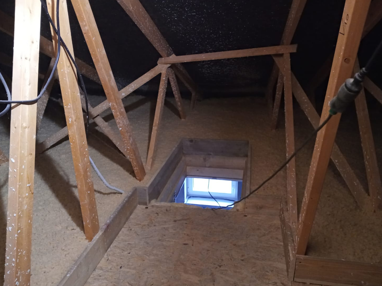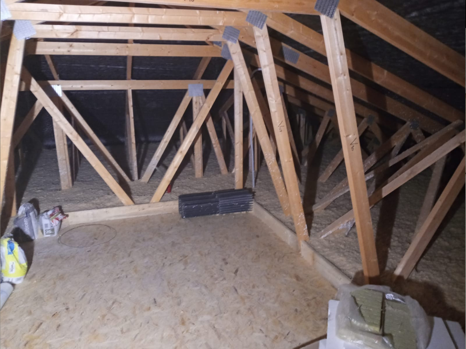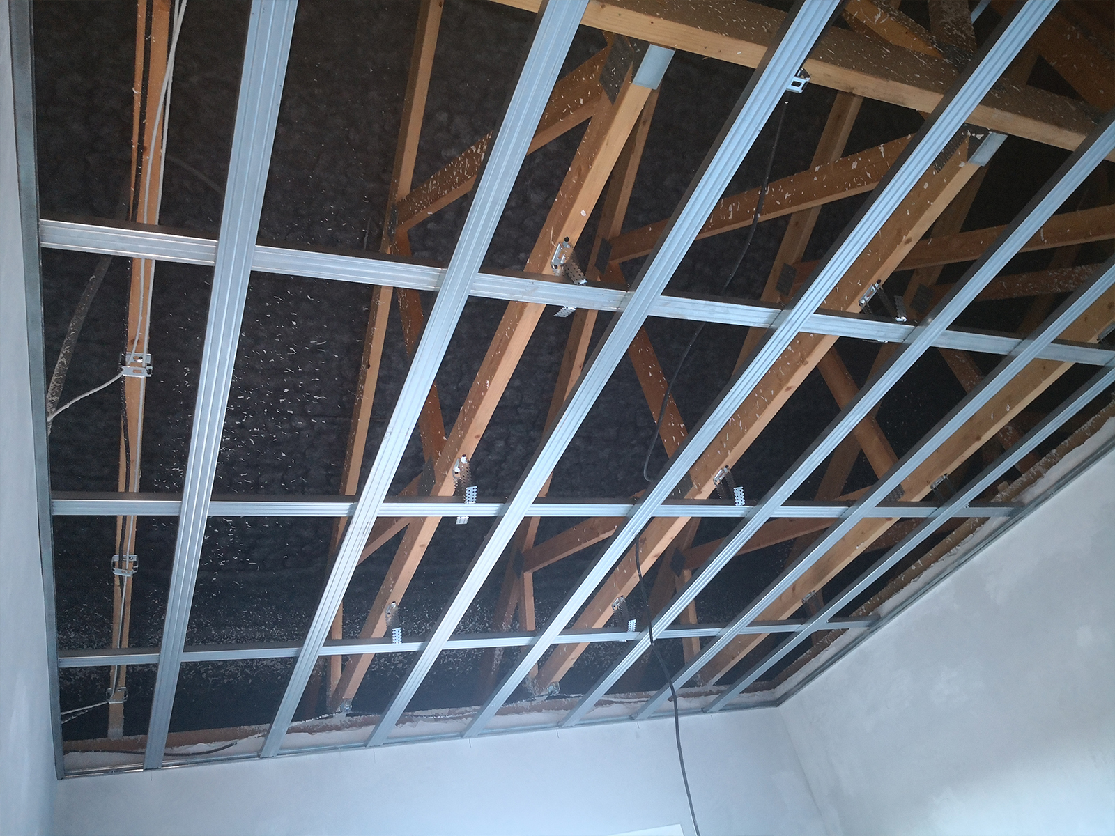 Predpríprava - na zavesený zhustený záves a SDK, prípravu pochôdznej plochy v streche a následné zafúkanie priestoru drevovláknitou izoláciou.