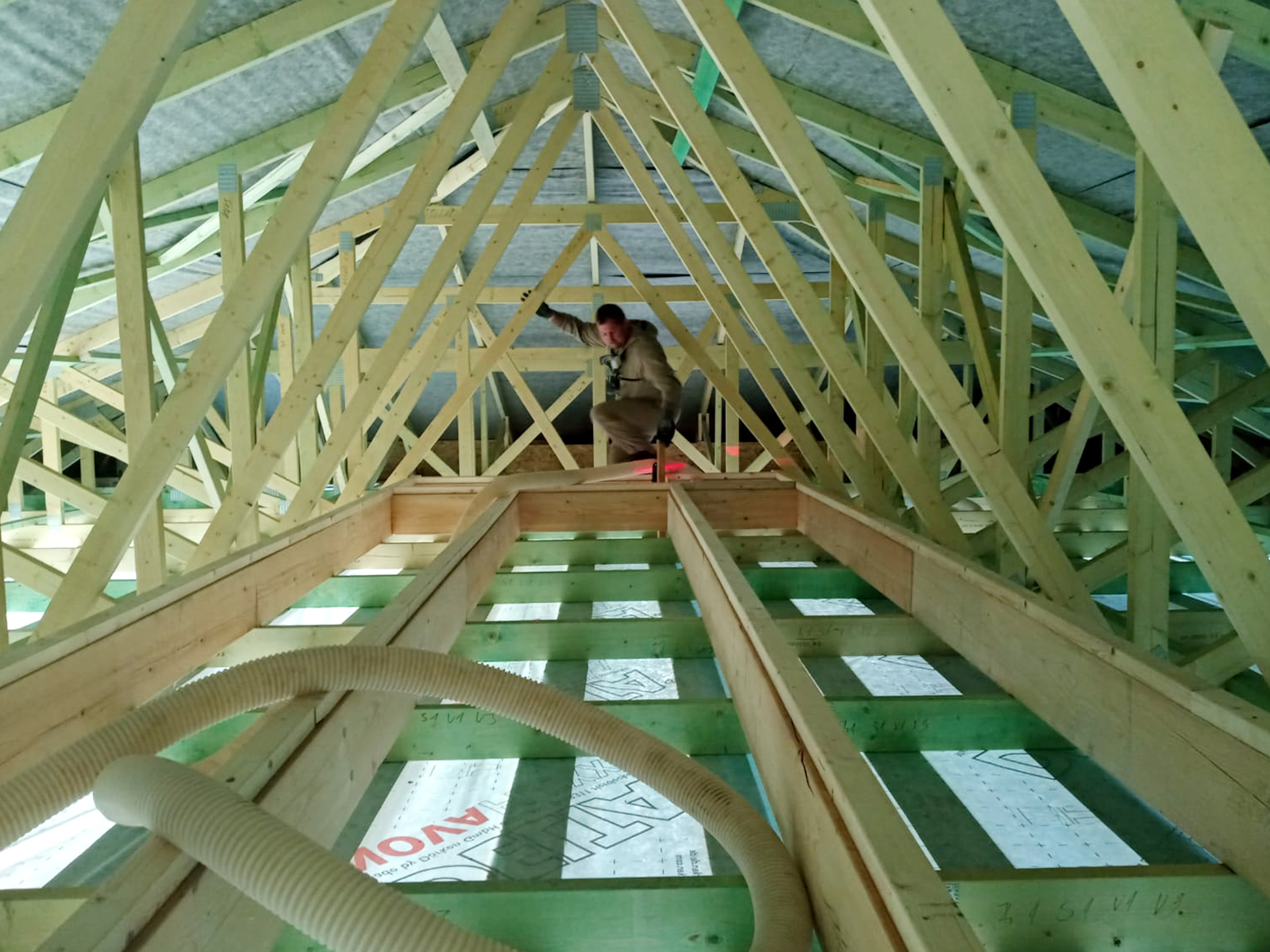Voľné fúkanie na parozábranu s latovaním v drevostavbe.