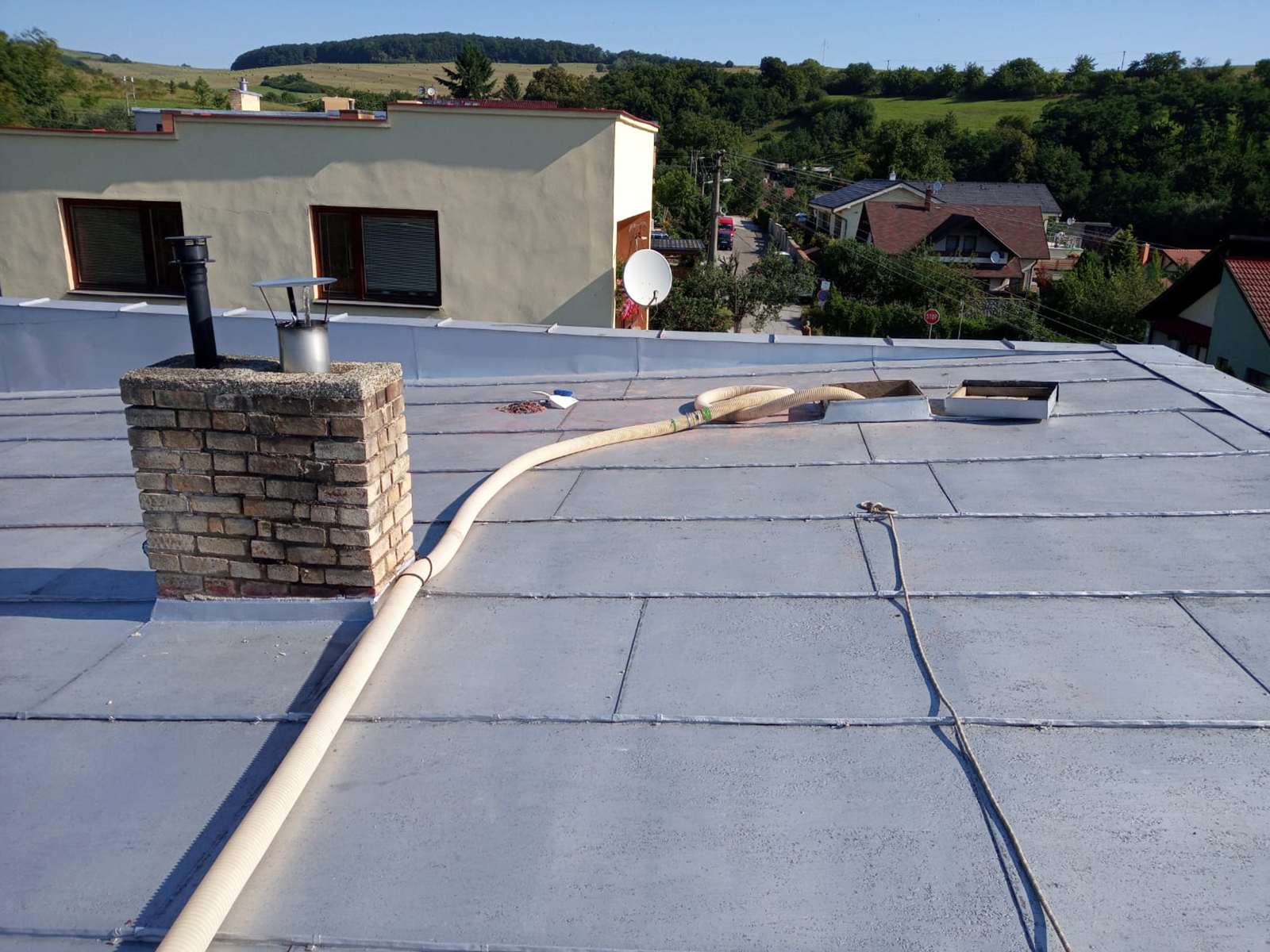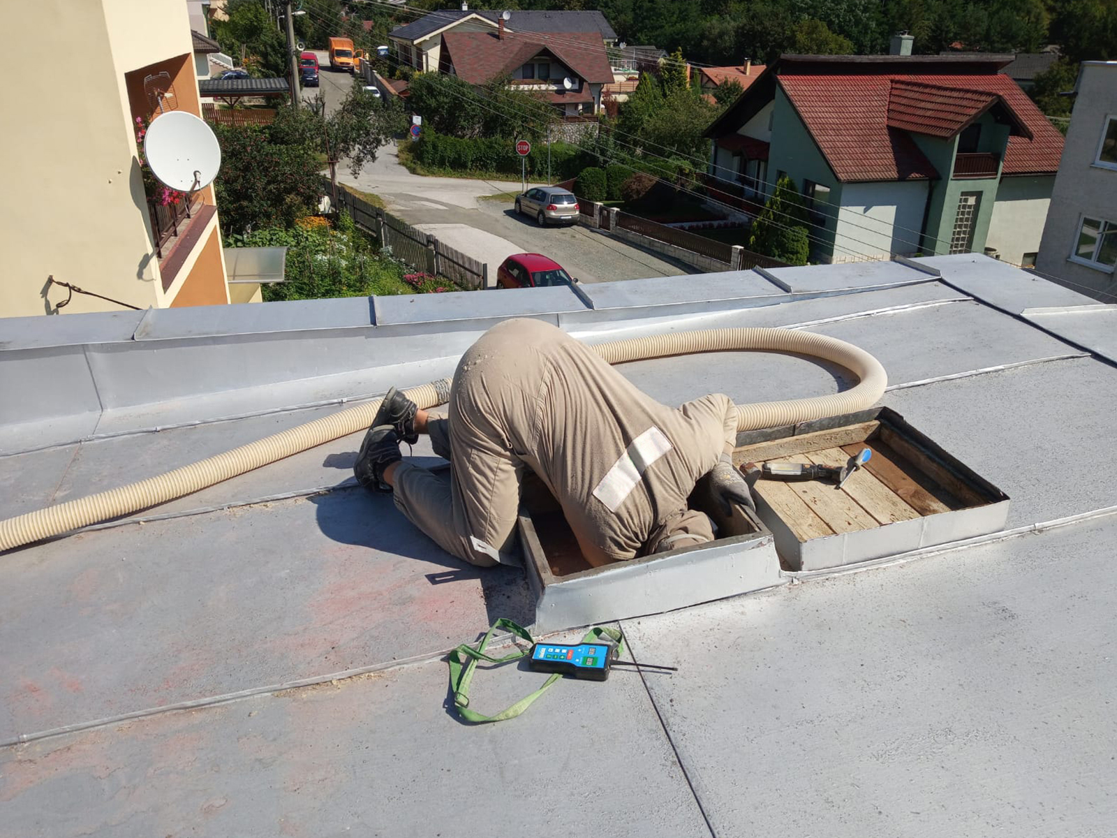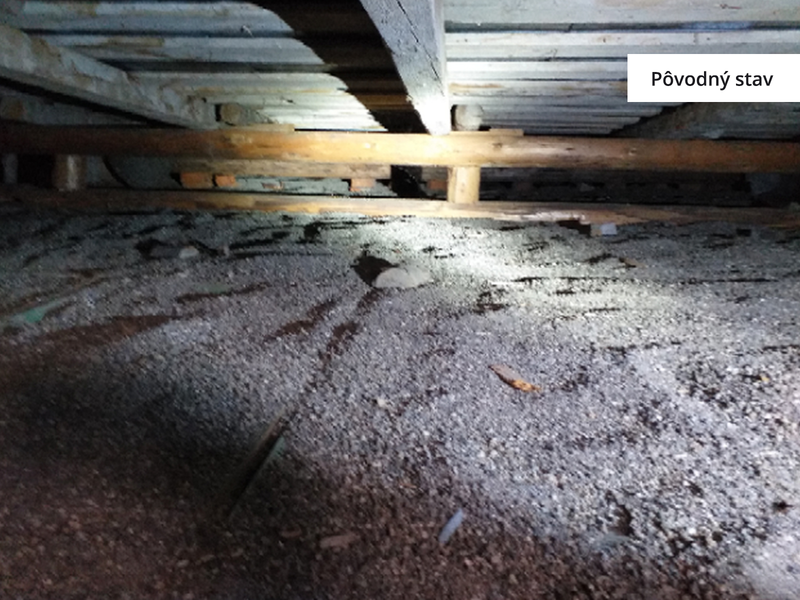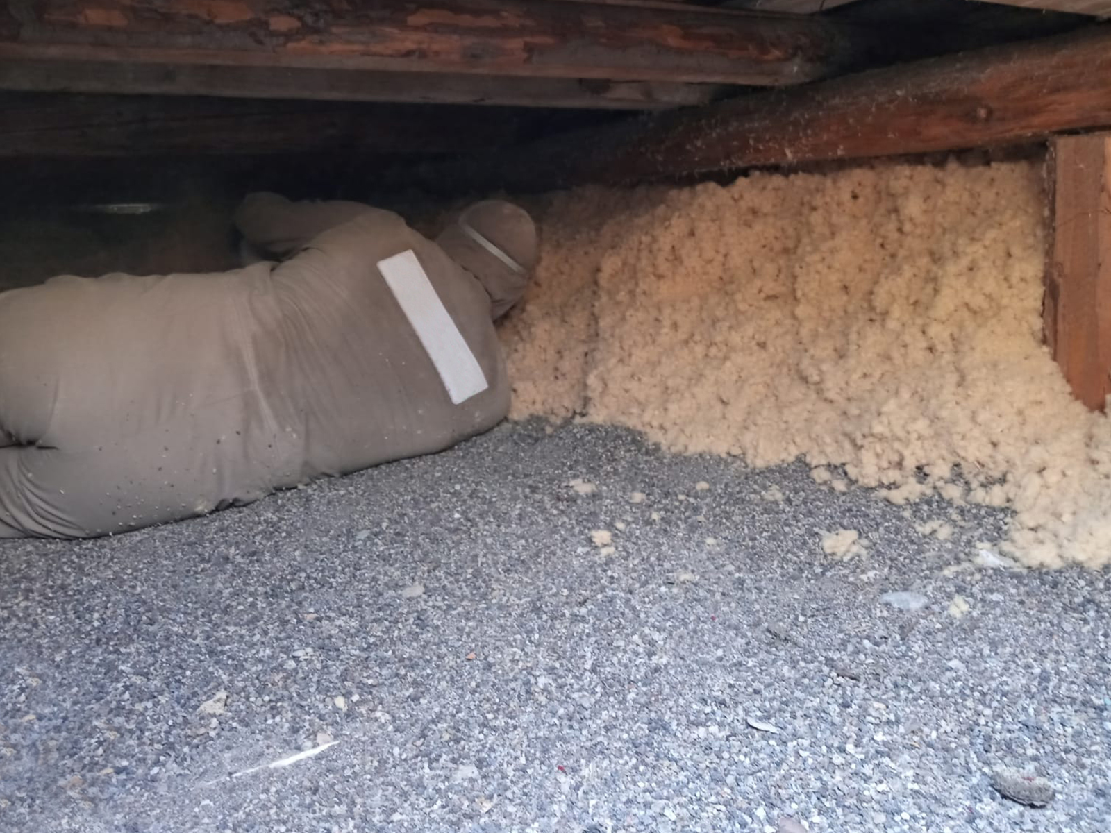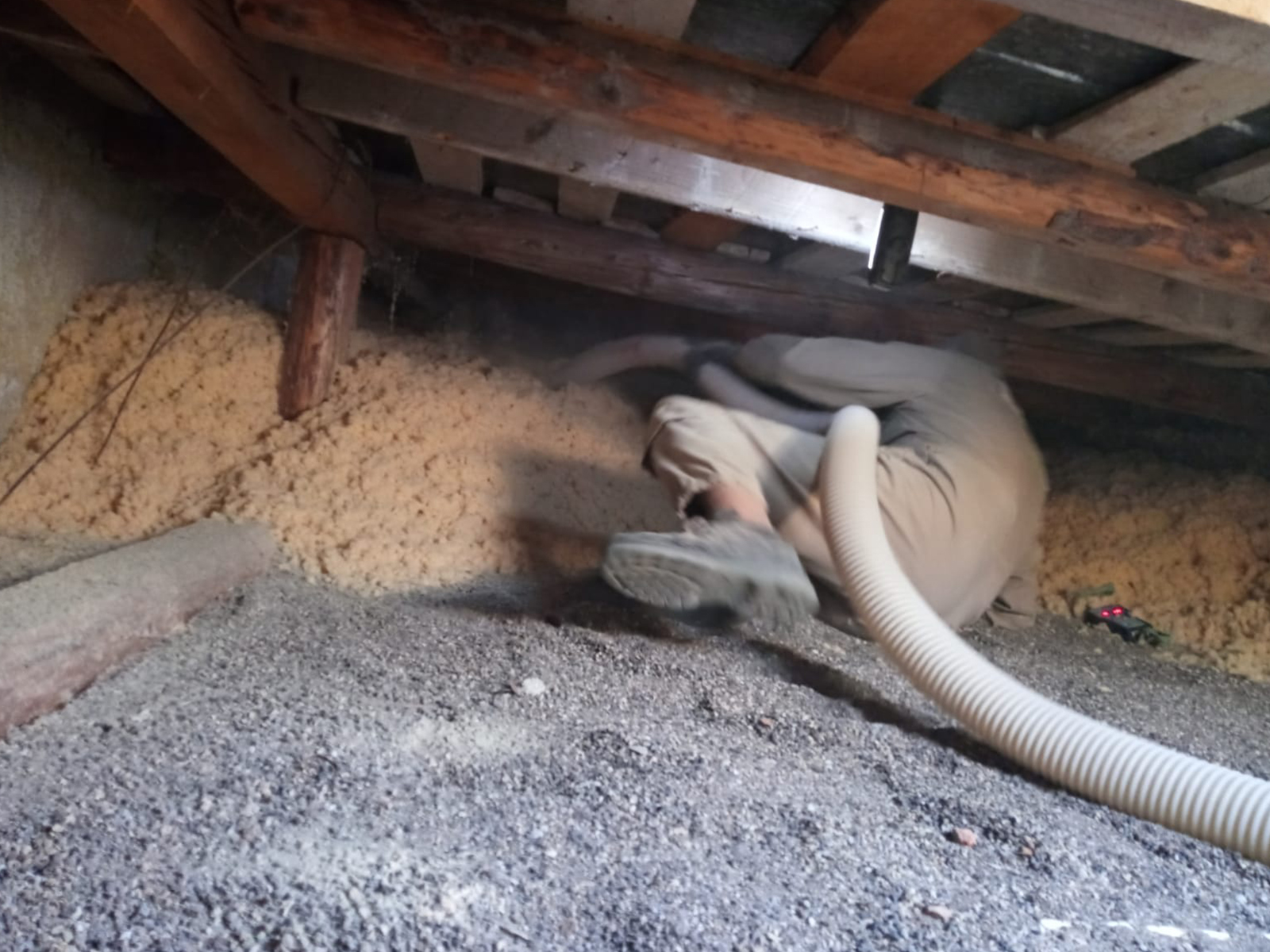 Voľné fúkanie strechy staršieho obytného domu. Fúkanie do veľmi nízkeho priestoru od 35 cm - do 75 cm