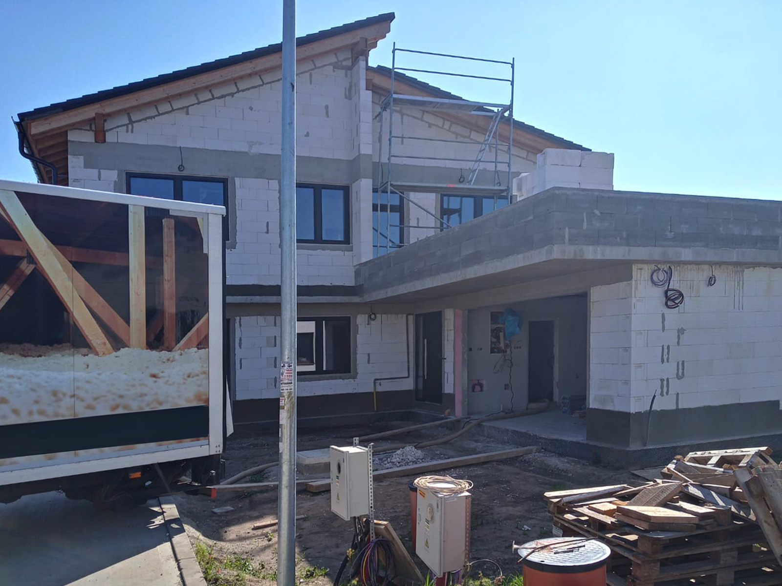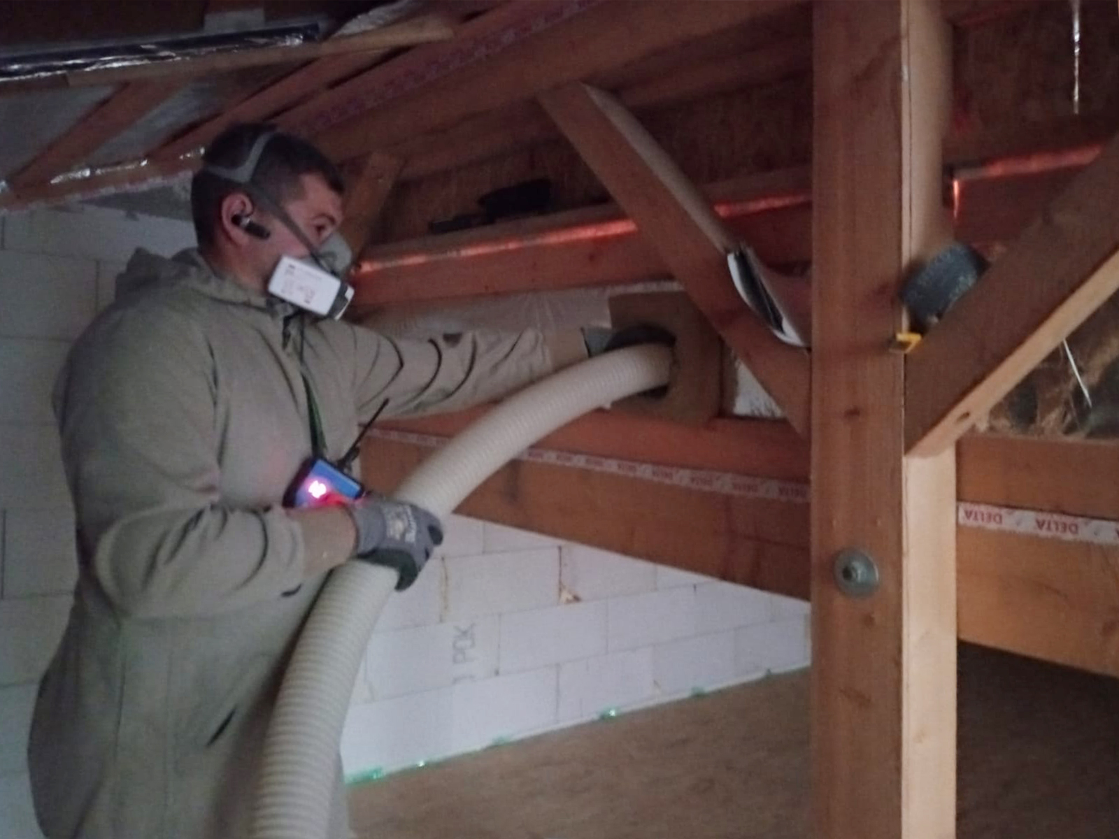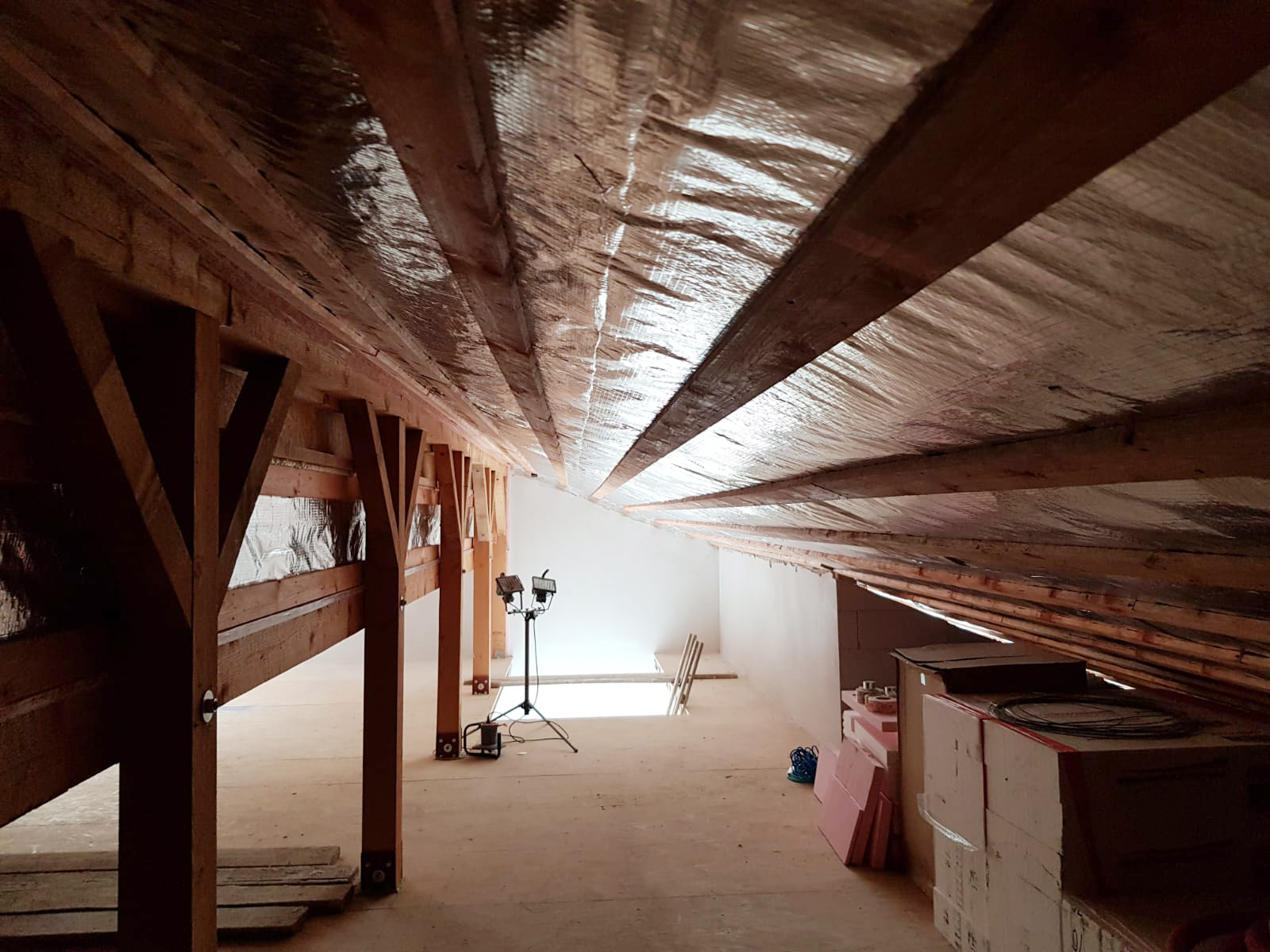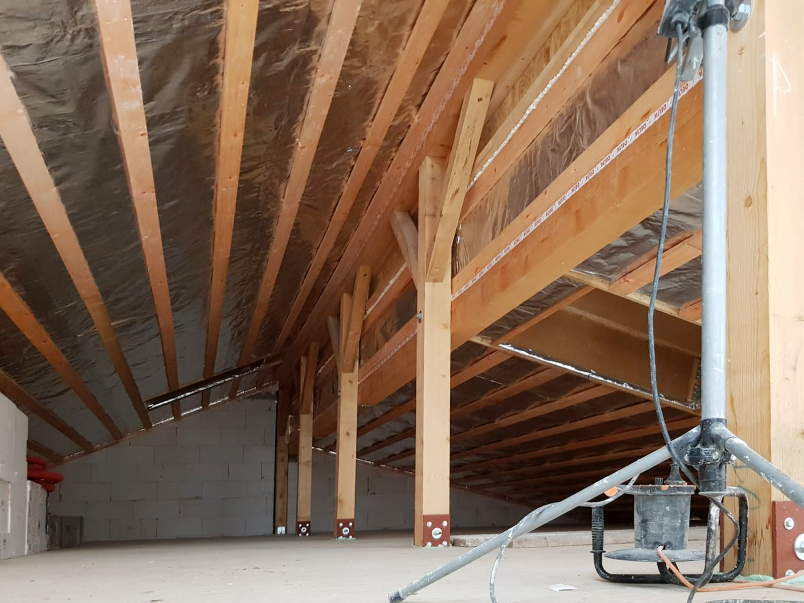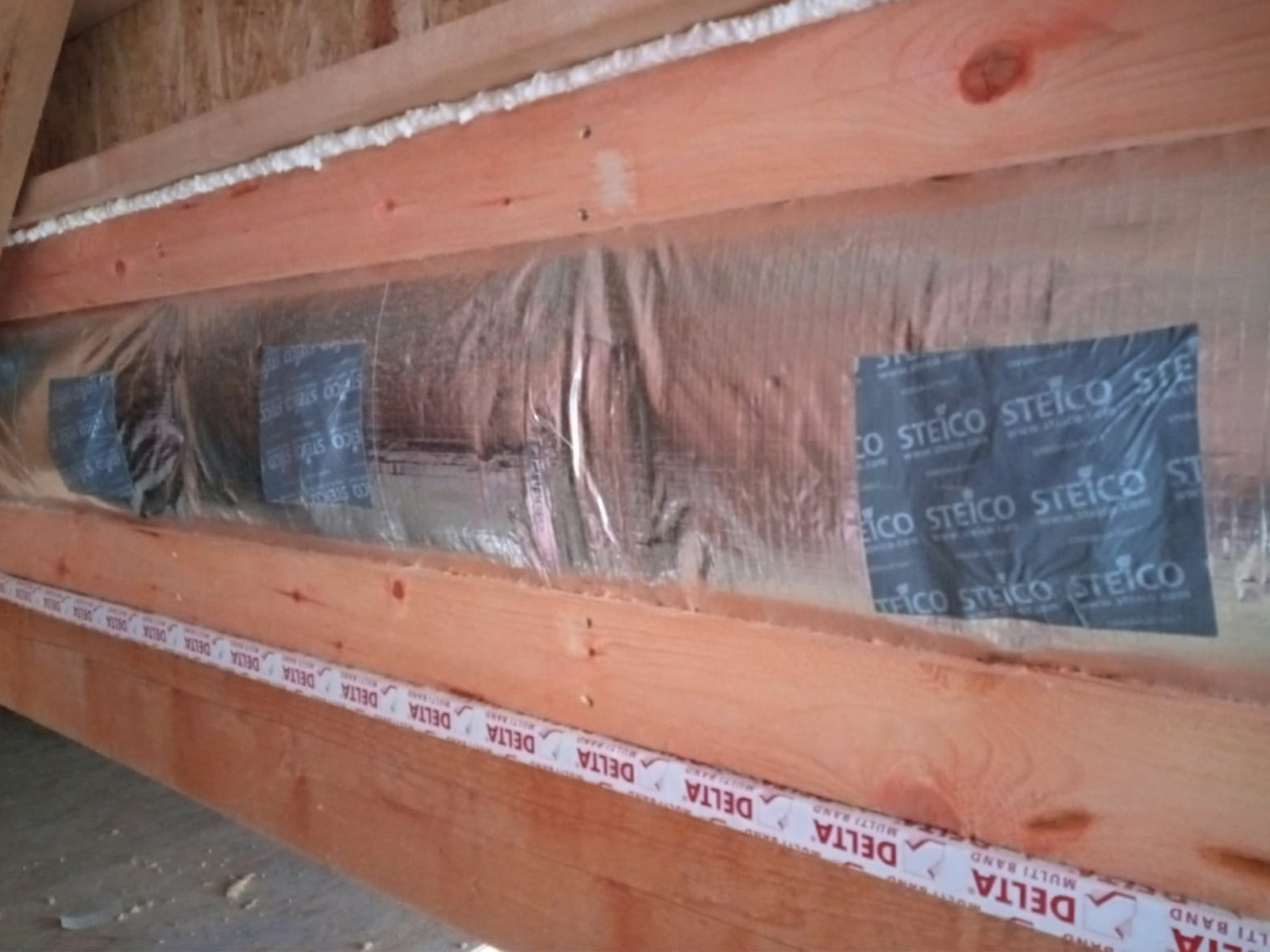Zateplenie: fúkanie do dutiny / medzi I-nosníky a cez parozábranu / záplaty STEICo páskami