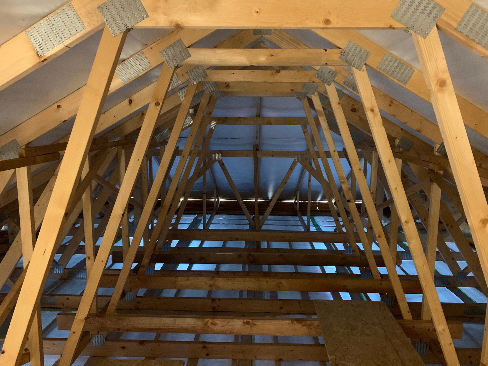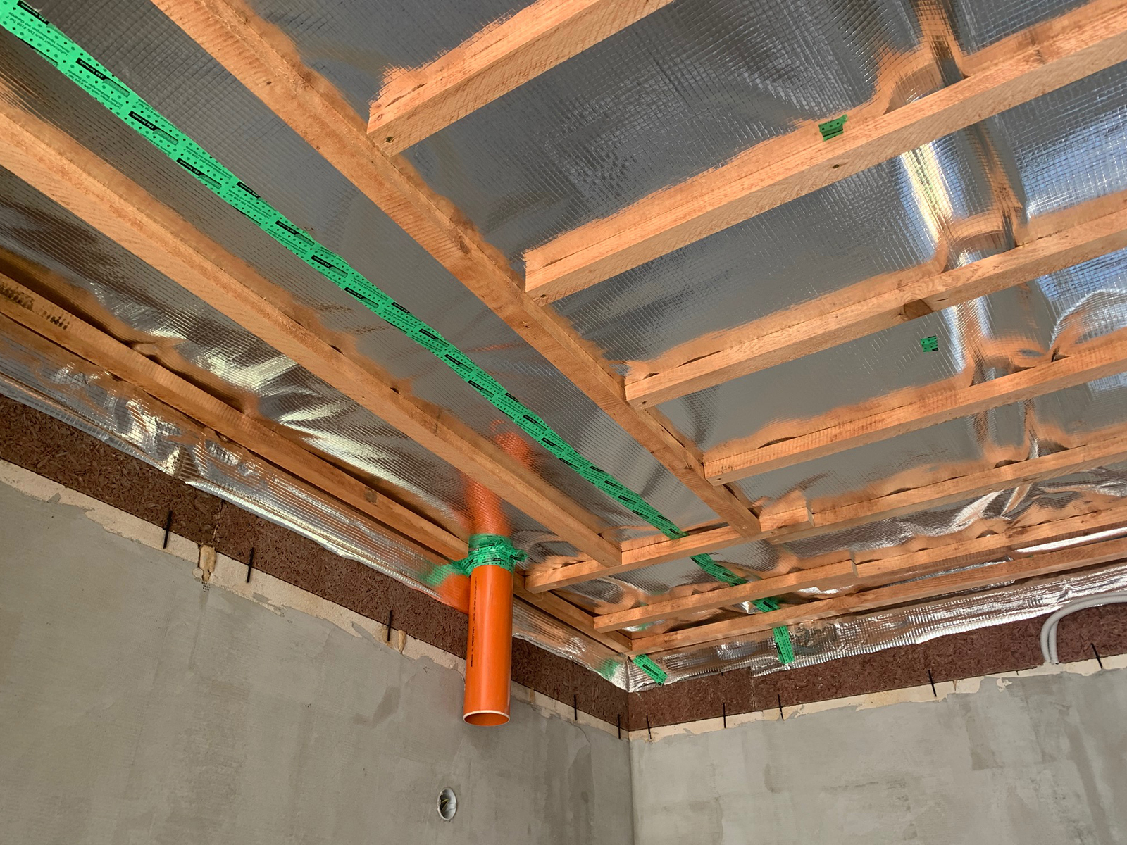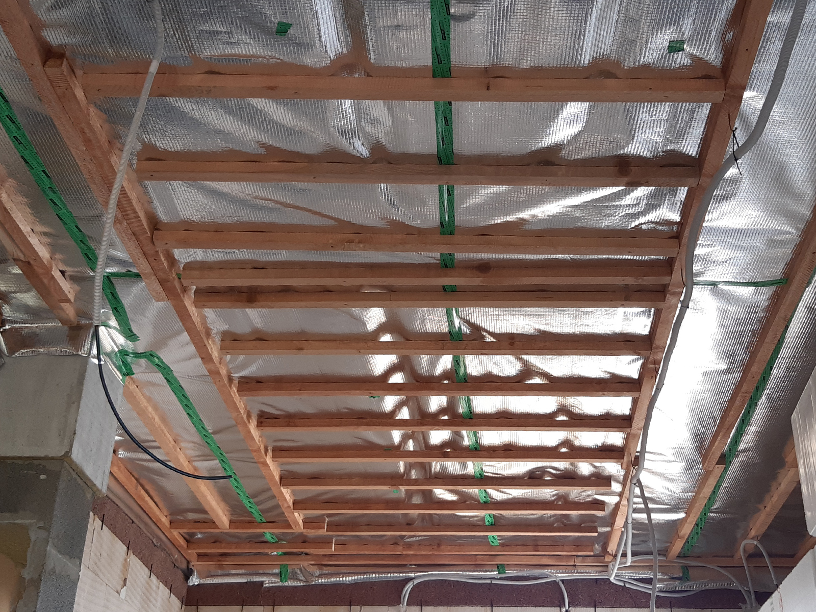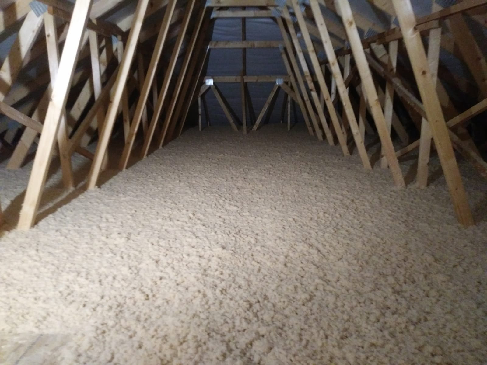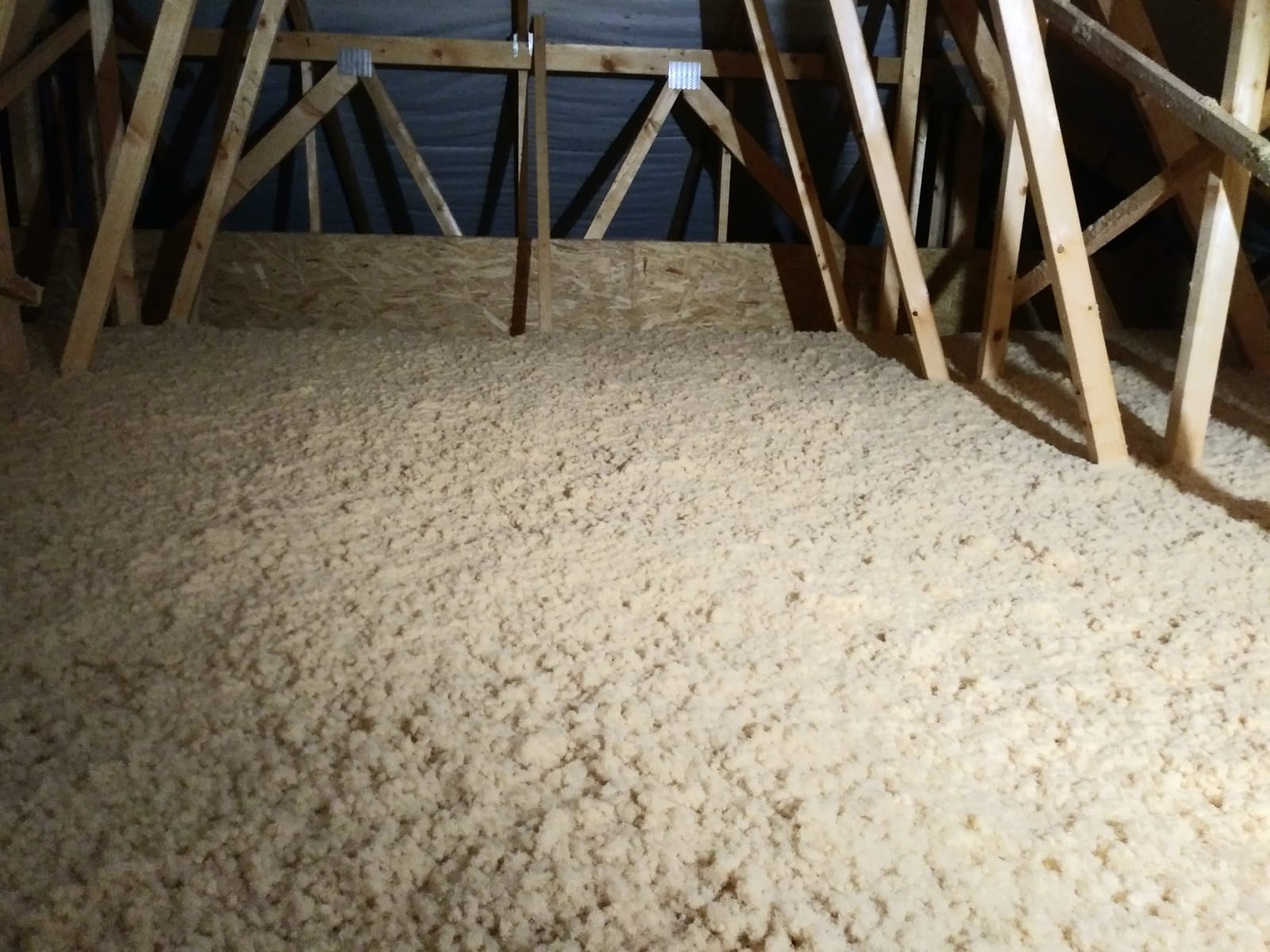 Zateplenie: voľné fúkanie vrátane prefúknutia cez obvodový veniec na presah strechy
