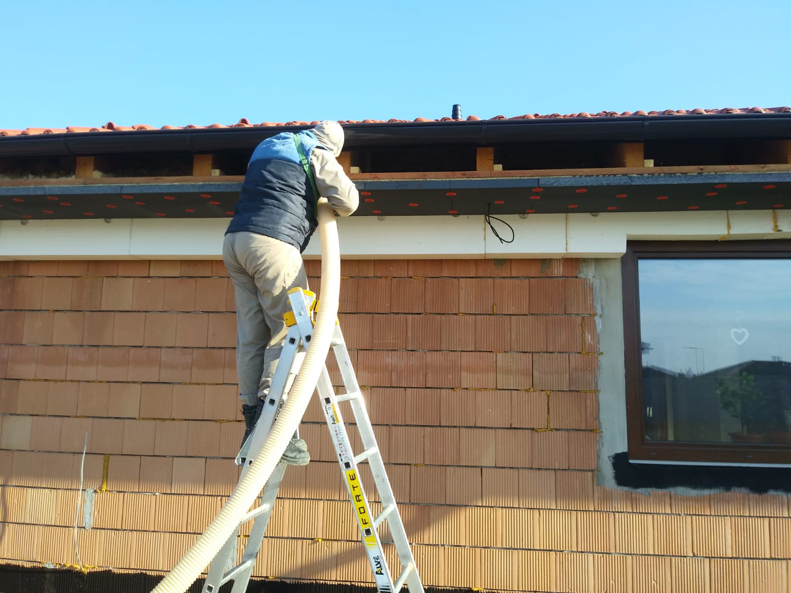 Zateplenie: dofúknutia presahov strechy proti premŕzaniu obvodového venca a vlhnutiu obvodových stien