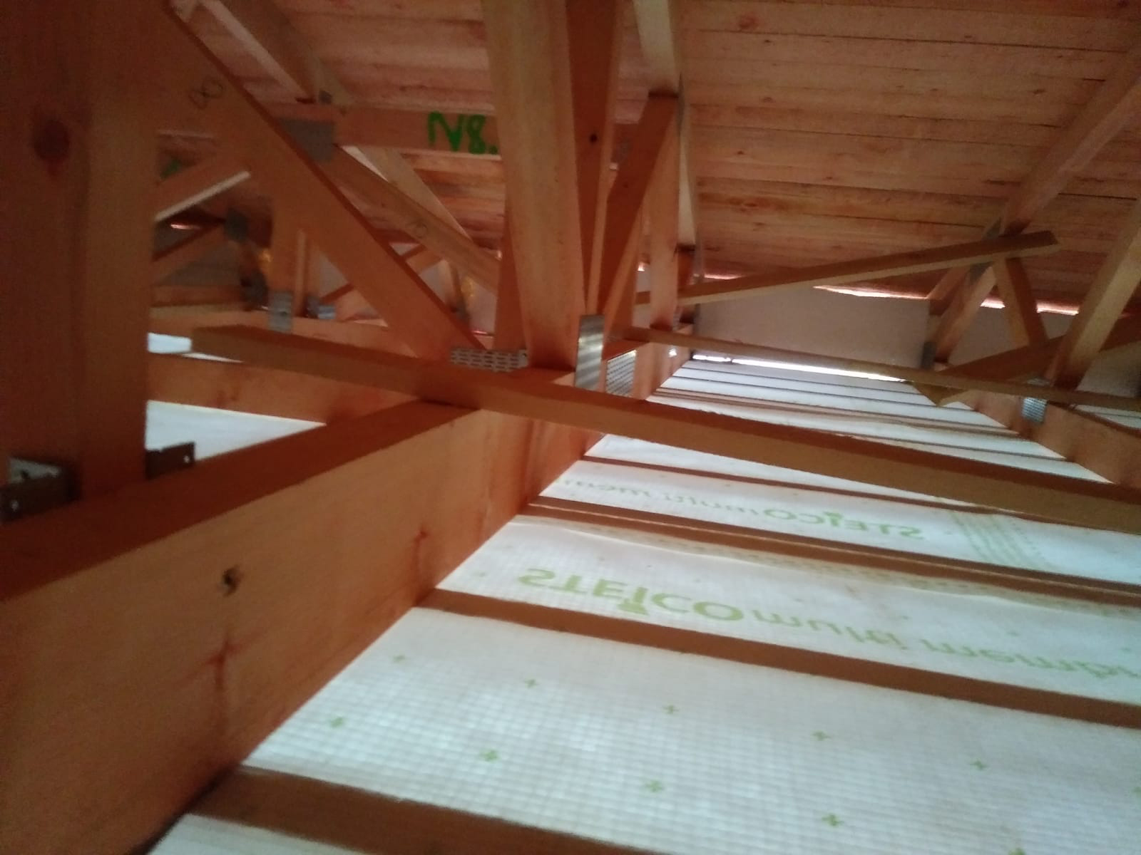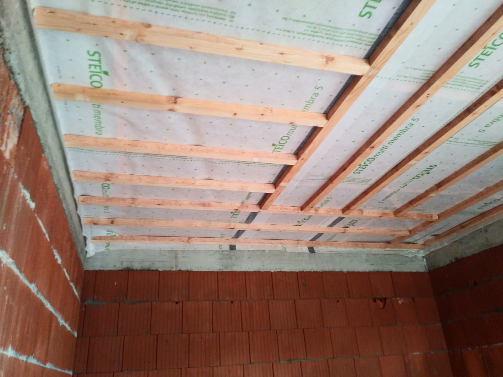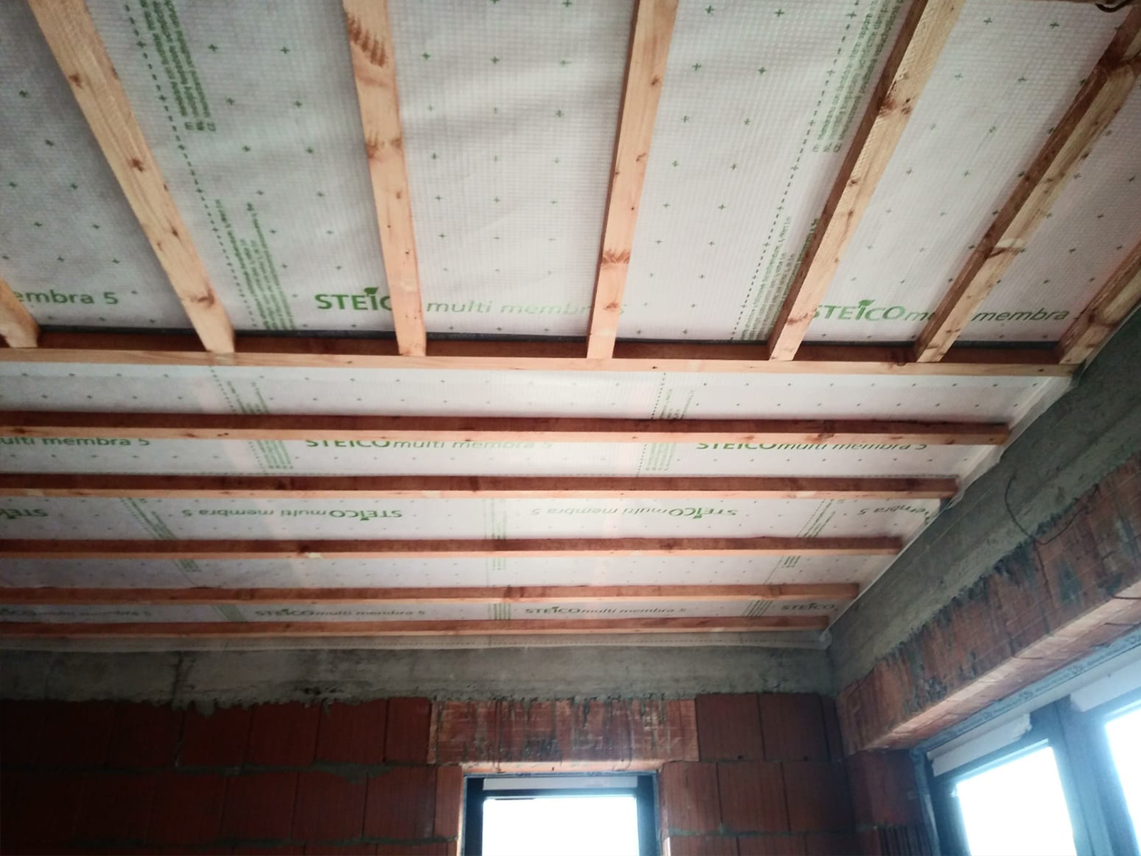 Fúkanie bez prefuku vrátane predprípravy: folia STEICO Multimembra 5, pásky STEICO F60, latovanie 40/50 po 35cm