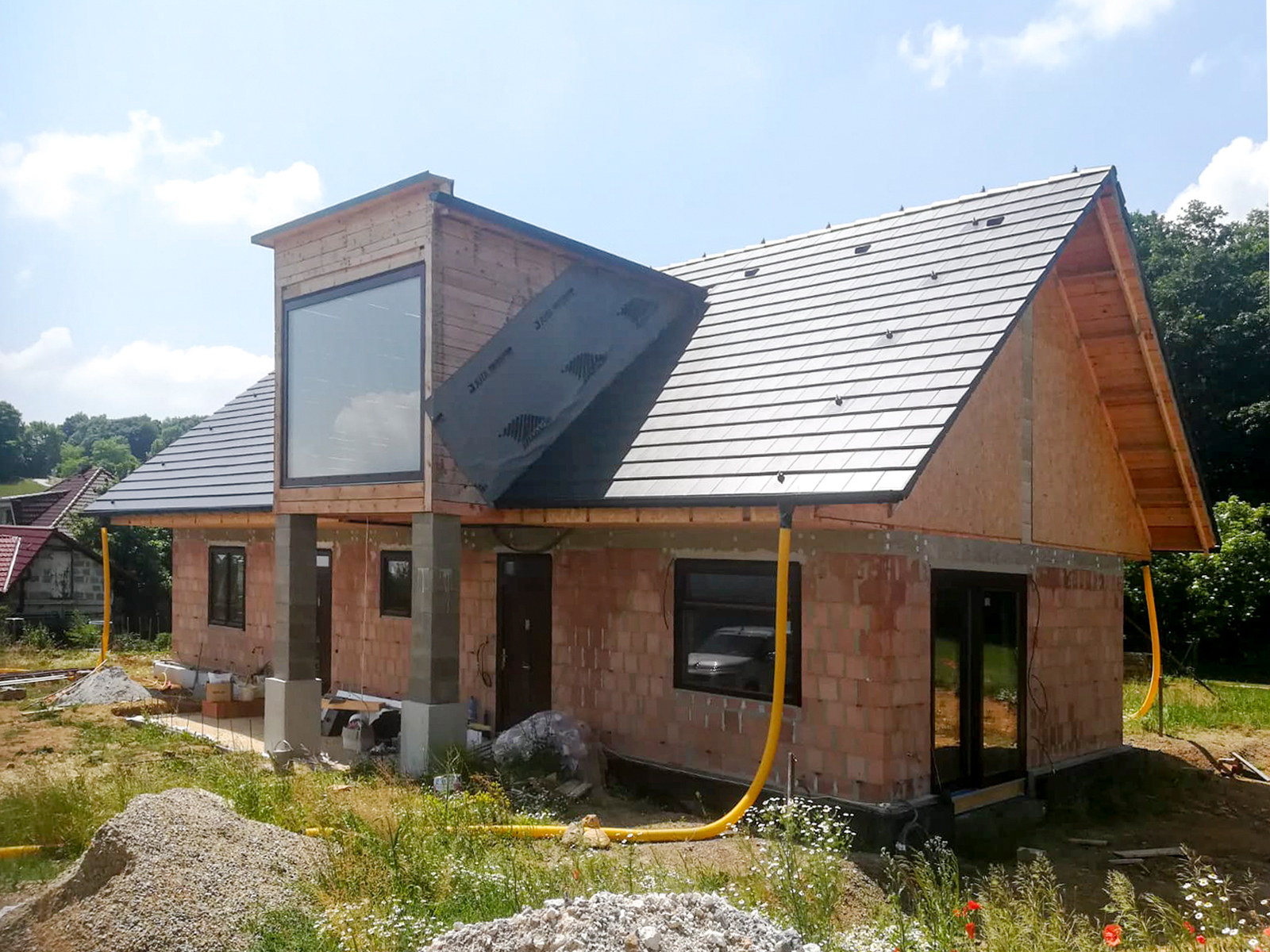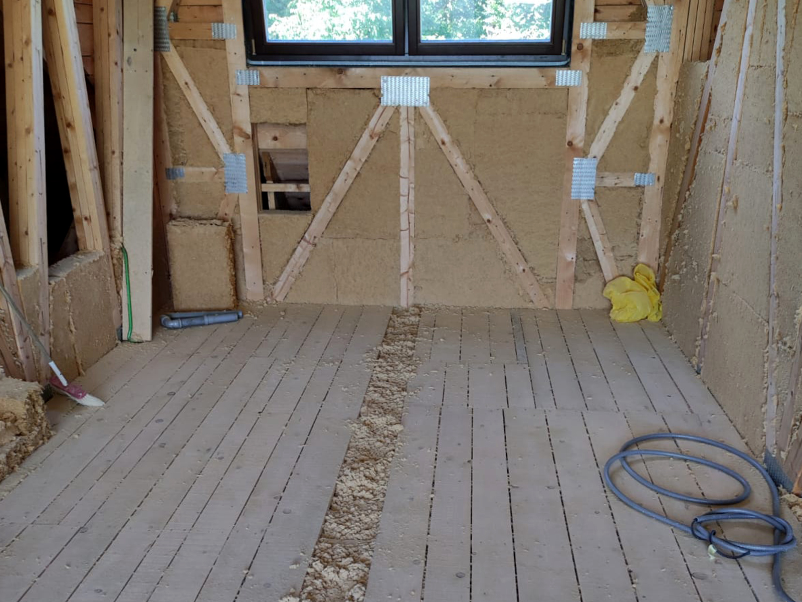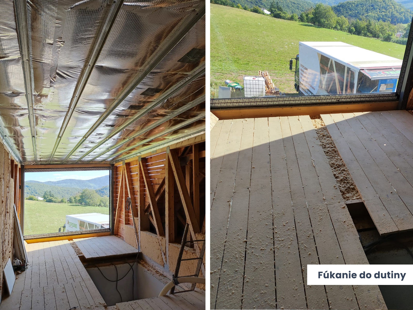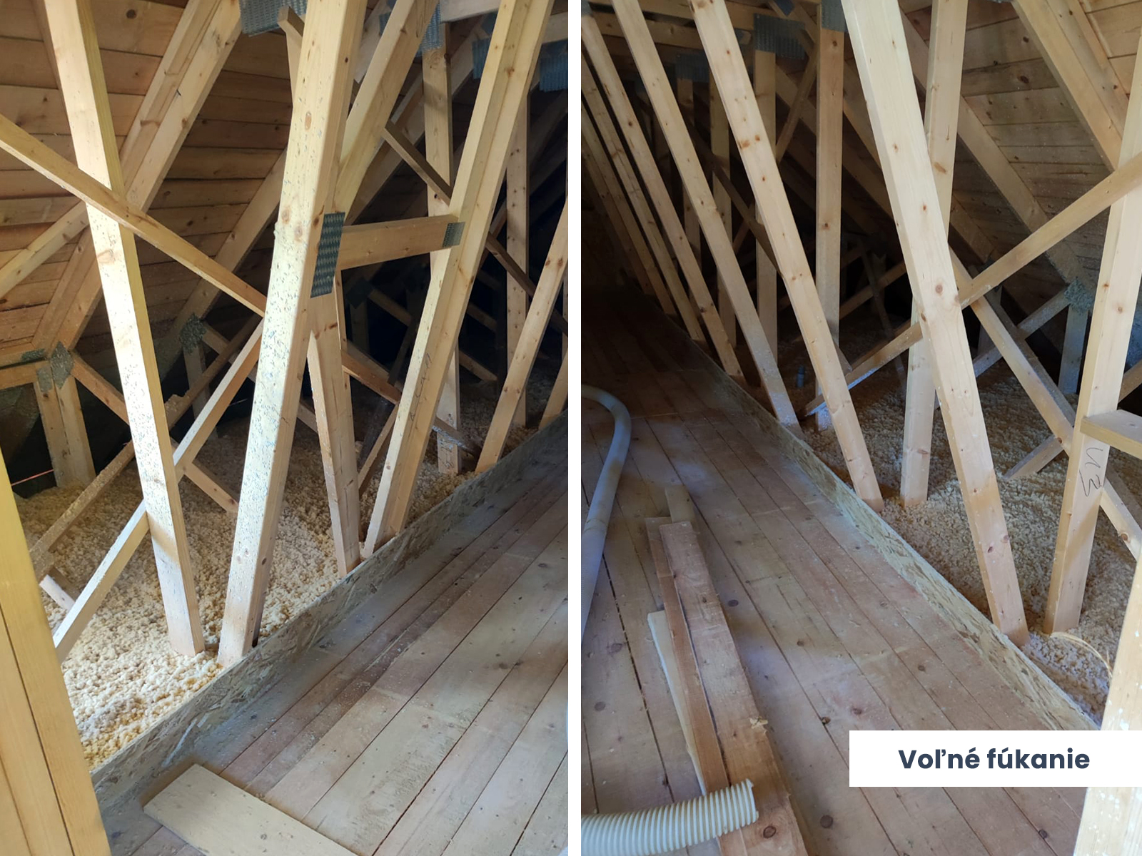 Zateplenie: Kon-truss väzníková strecha, kombinácia voľné fúkanie a fúkanie do dutiny